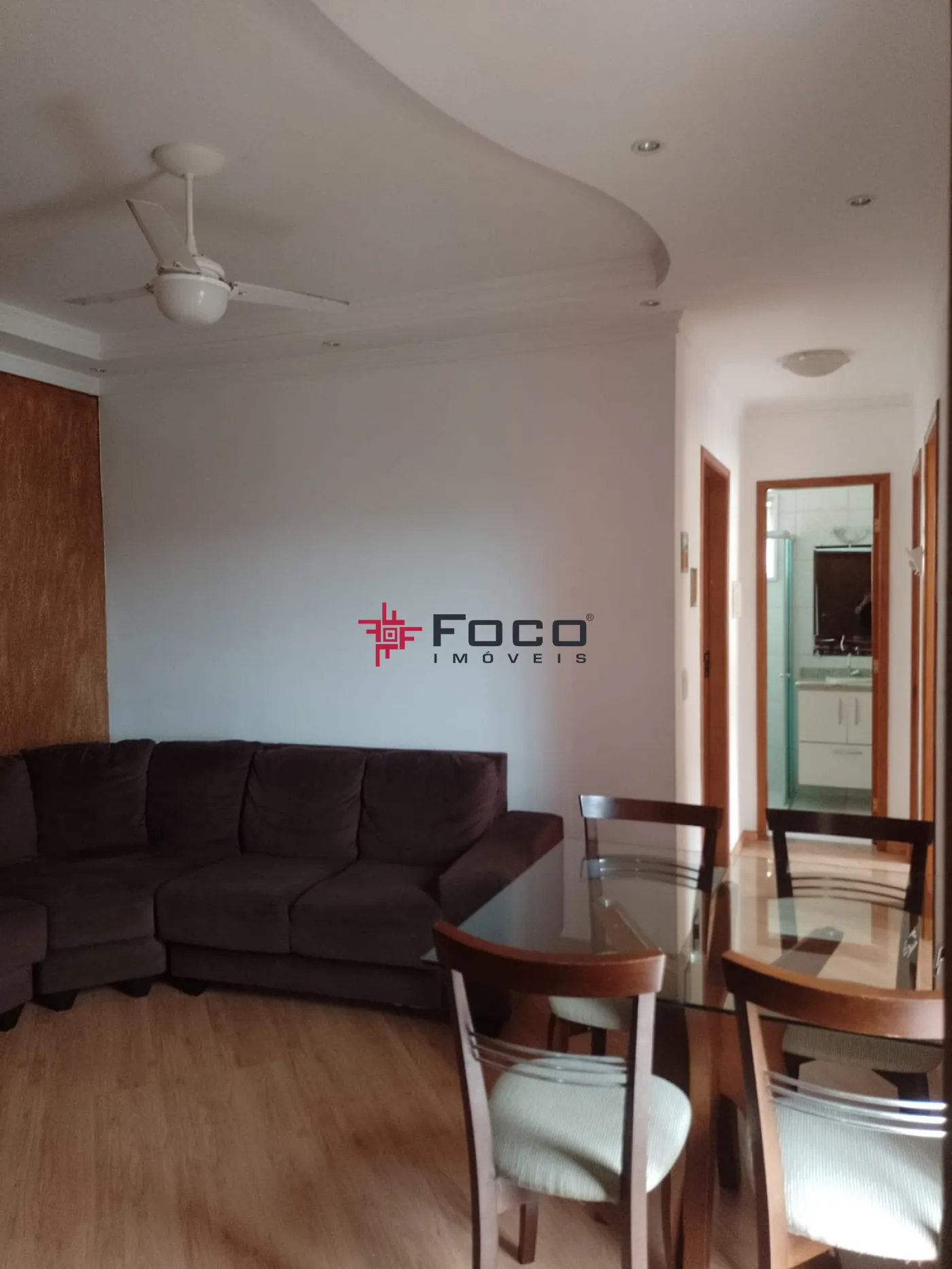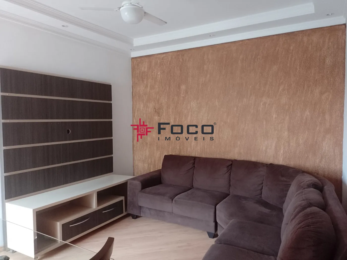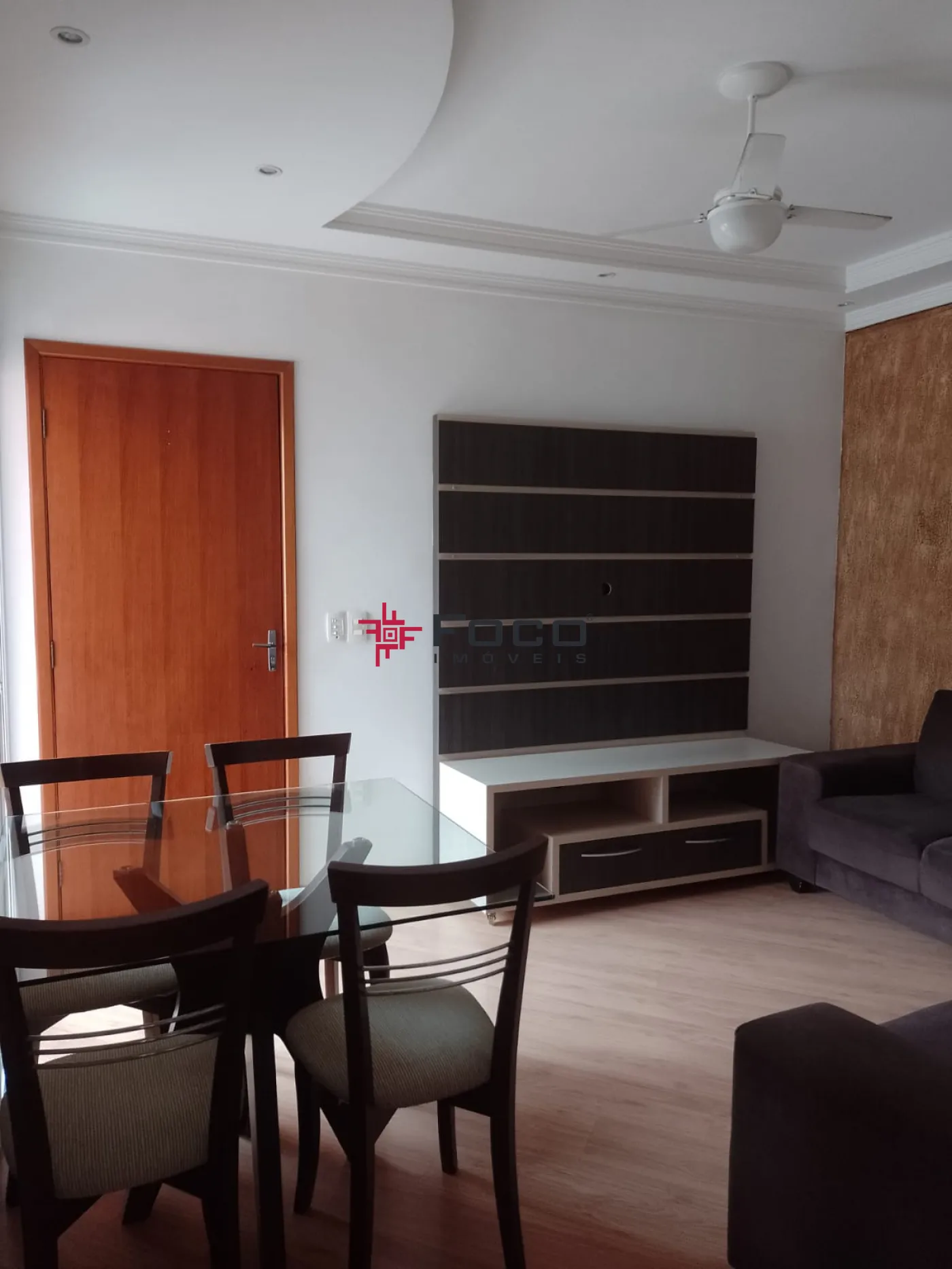 - Sala com painel de Tv, sofá em L e mesa com 04 cadeiras