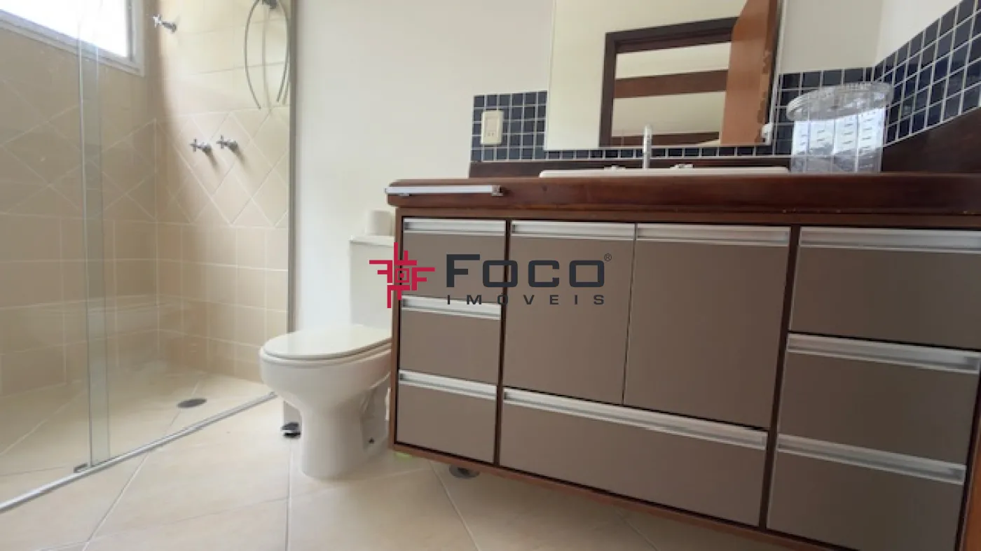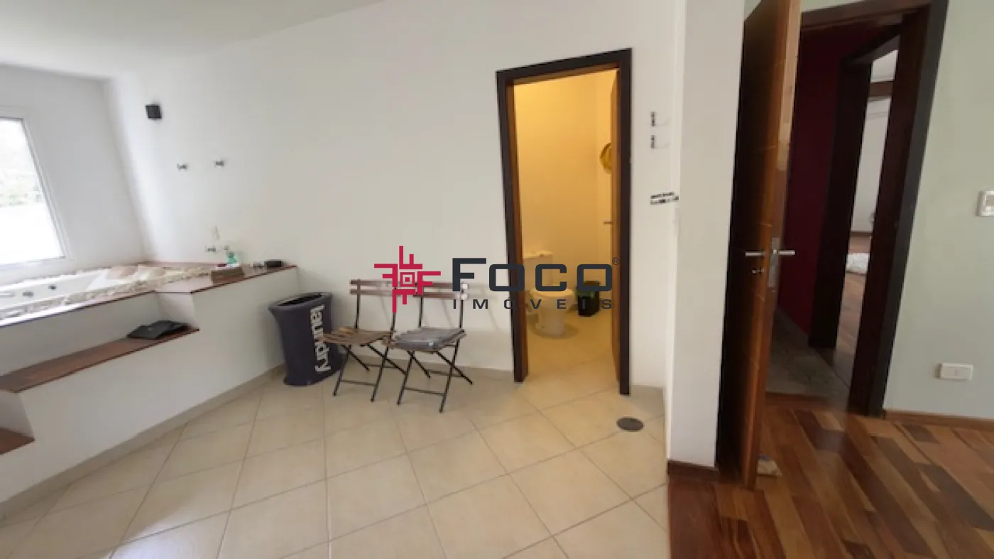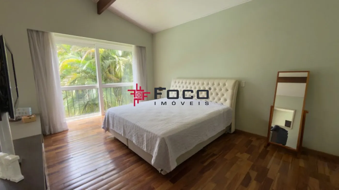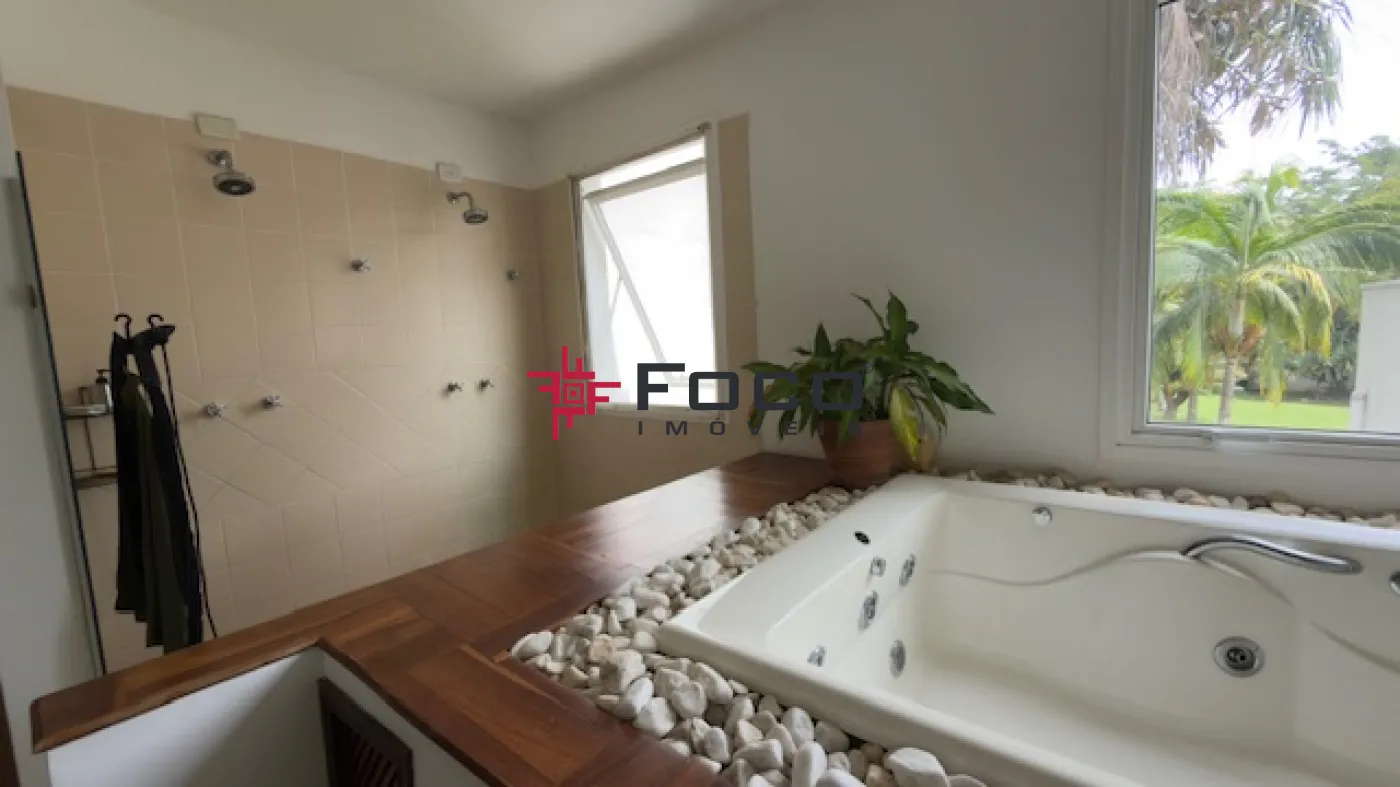 - 03 suítes, sendo a suíte máster com closet, cuba e ducha dupla, além de banheira de hidromassagem (todas com vista para o jardim e a piscina)