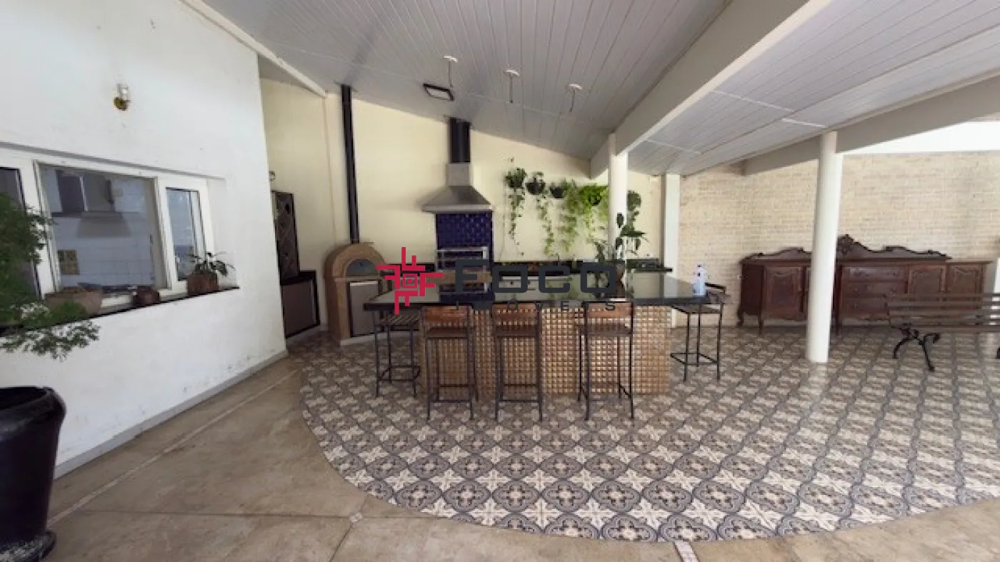- Área gourmet com churrasqueira, forno de pizza, adega, lareira, ducha, piscina e jardim.