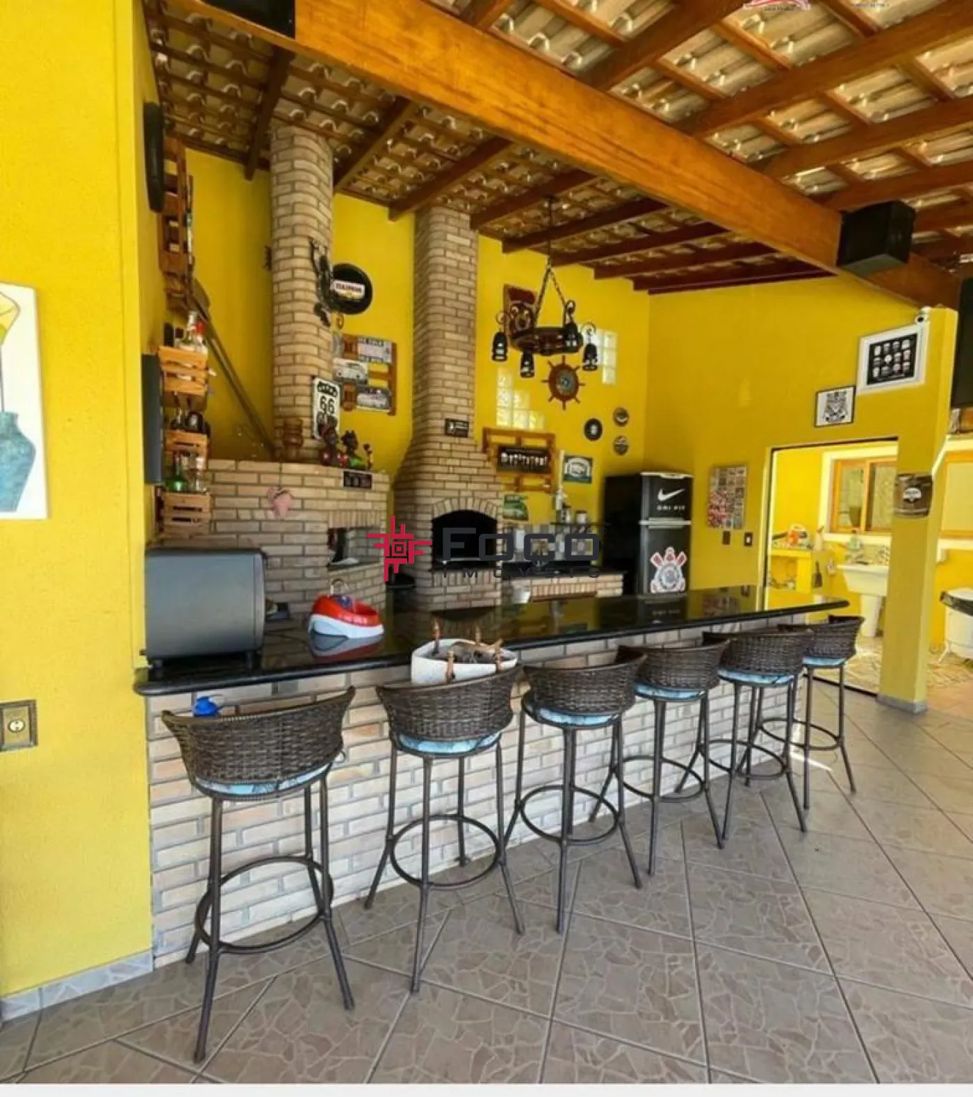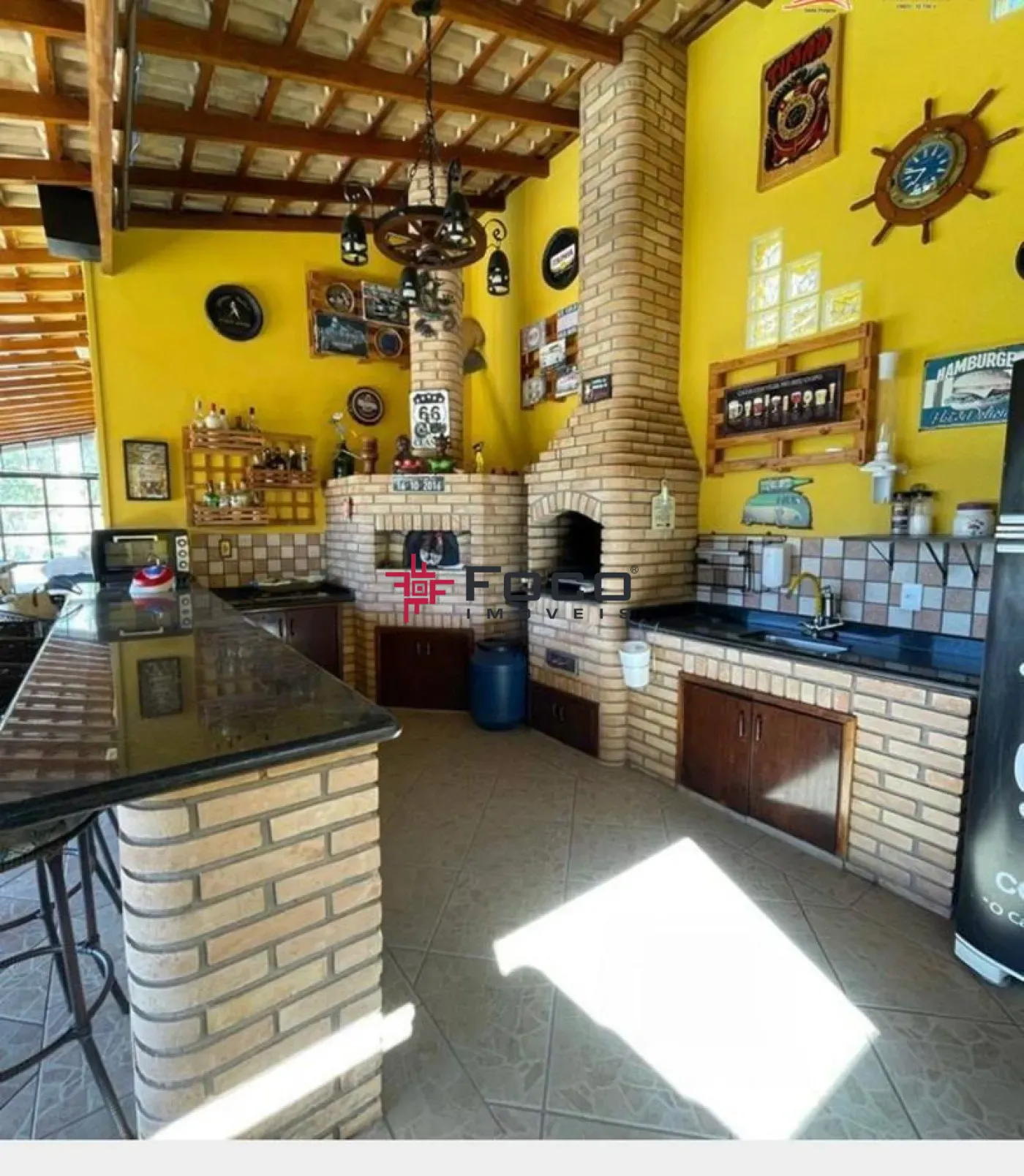 - Área de churrasqueira e forno de pizza