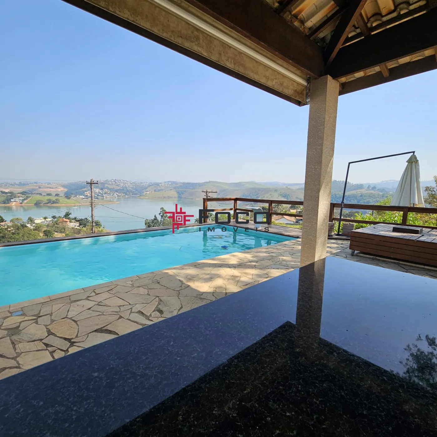 - Área gourmet com Churrasqueira, Piscina e uma bela vista para a Represa.