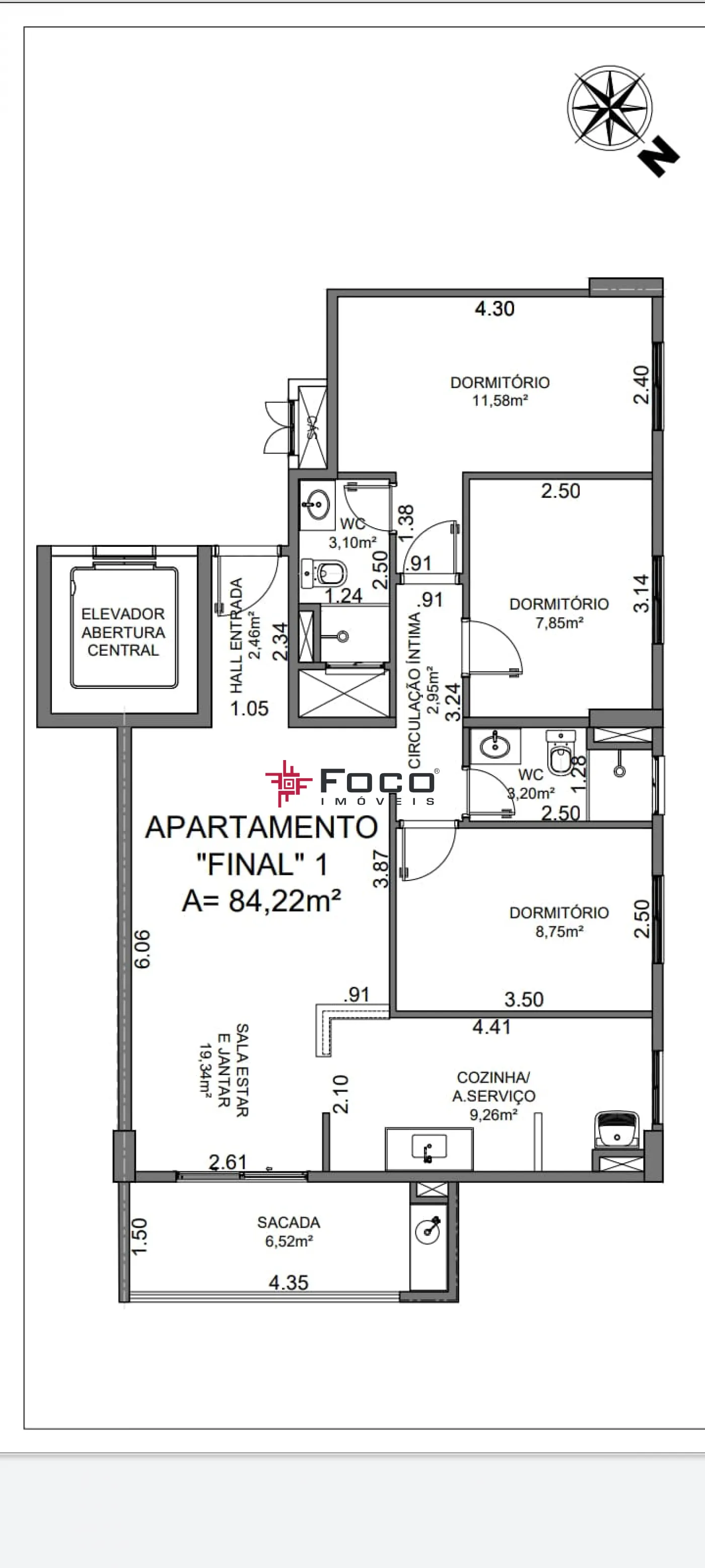 Área Privativa: 84,22m².