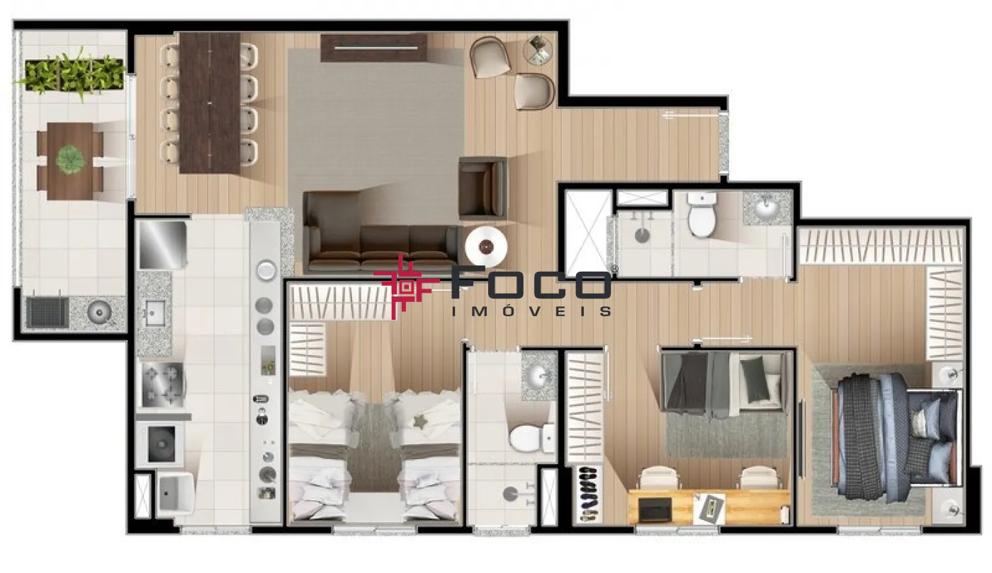 - 03 dormitórios, sendo 01 suíte;