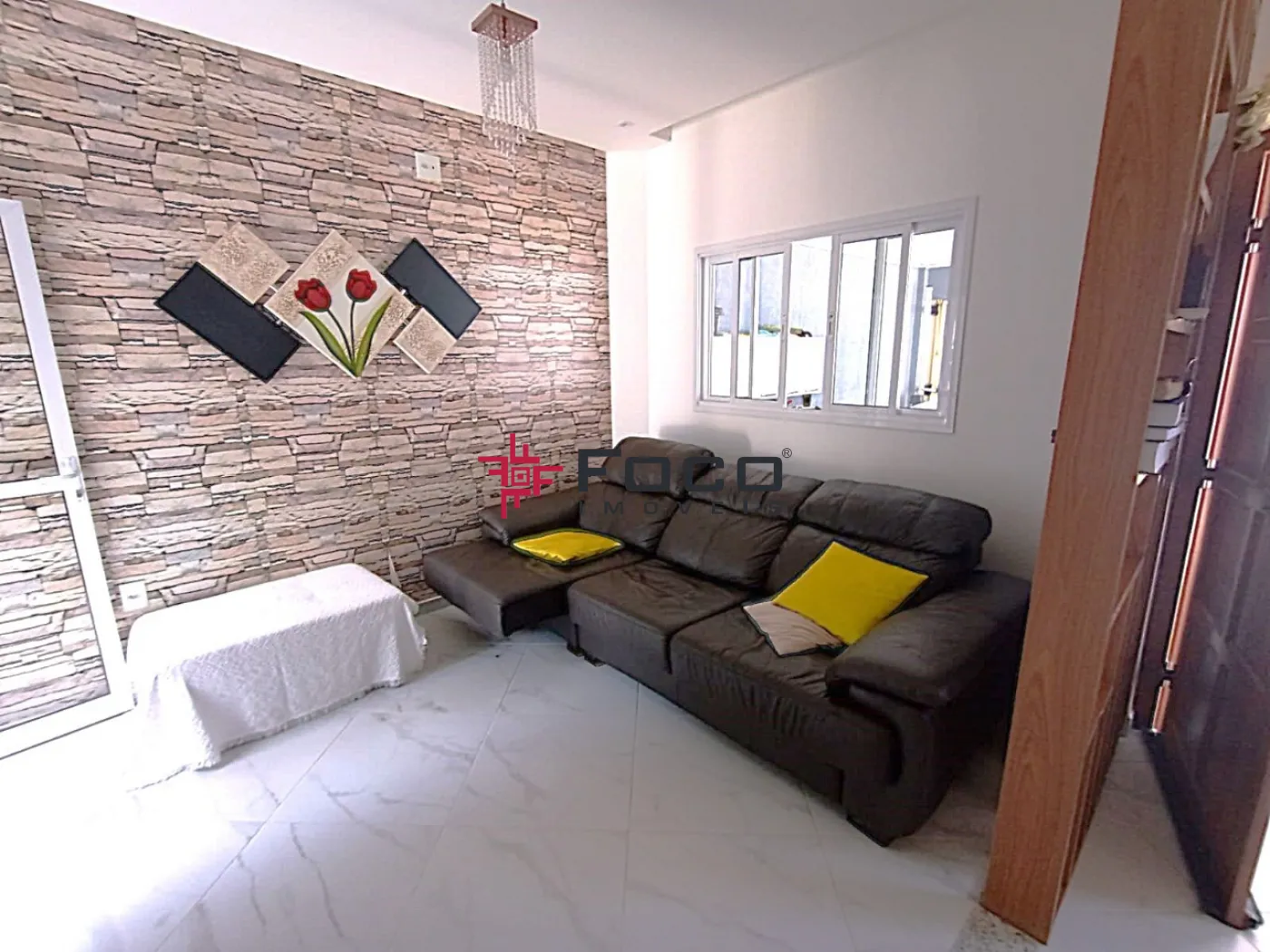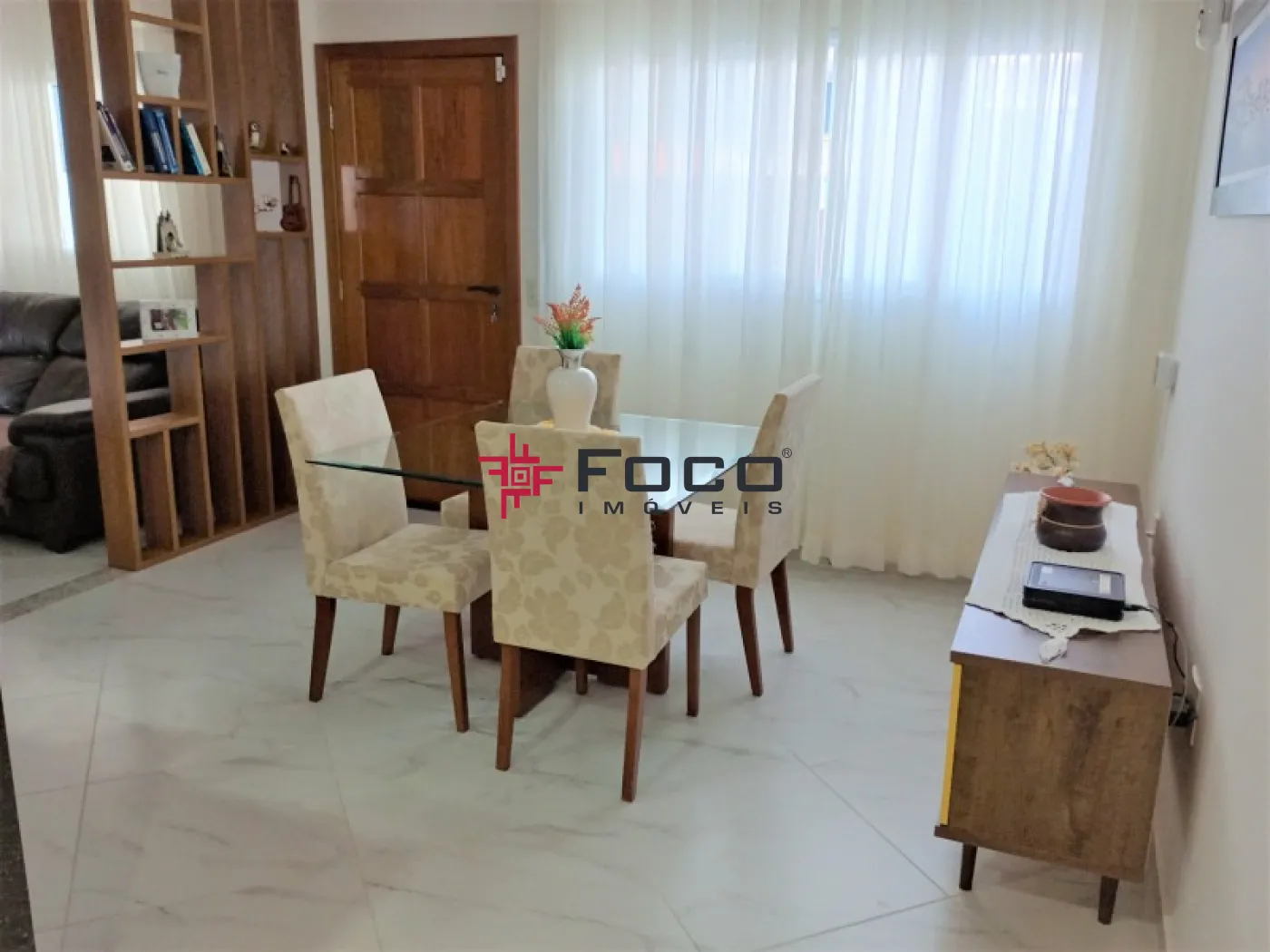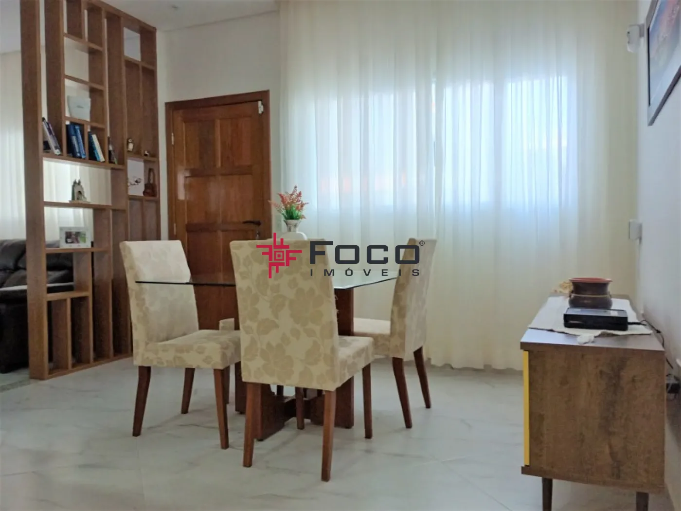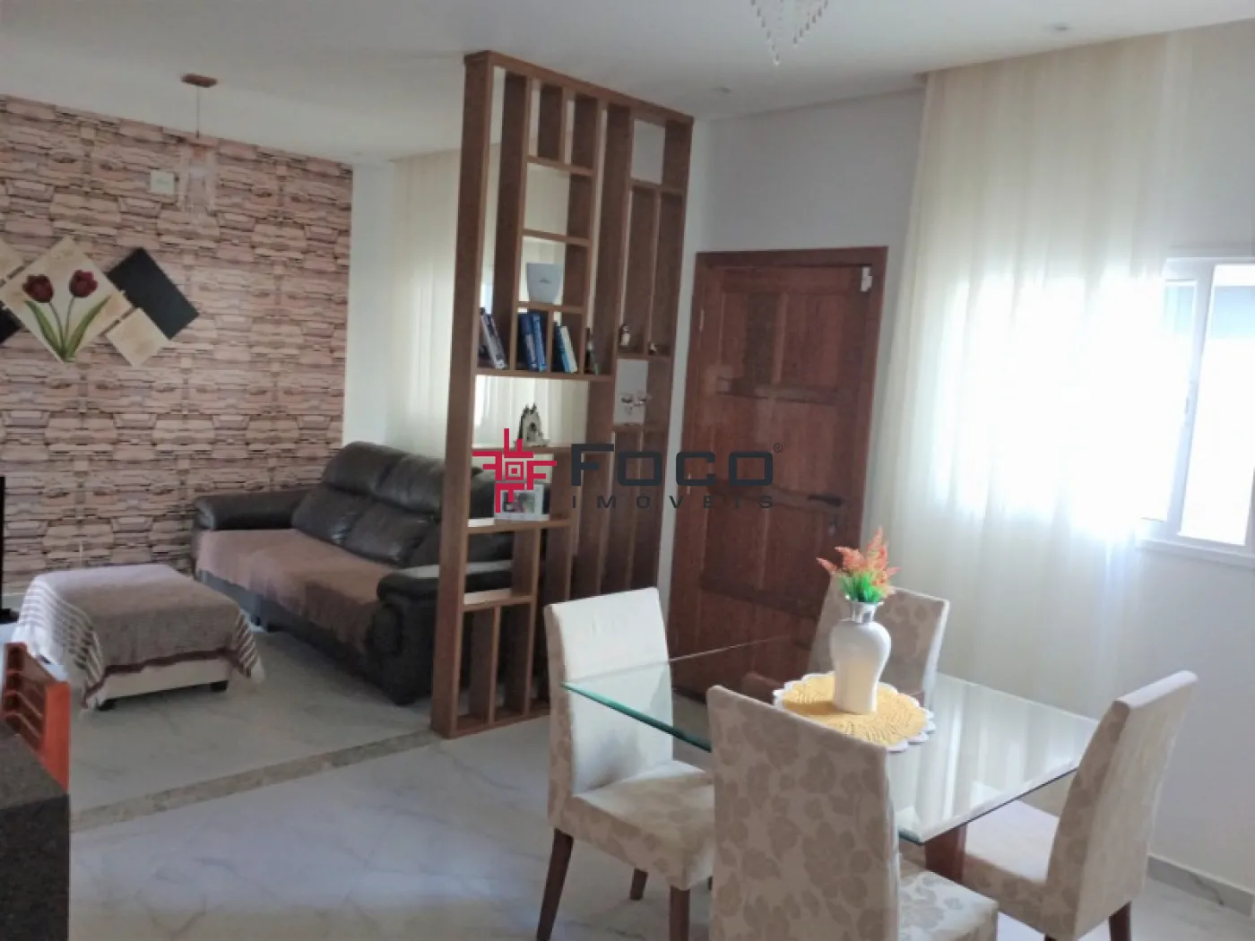 - 01 Sala Ampla e bem iluminada, perfeita para dois ambientes, com painel em madeira ripada e estante vazada personalizada