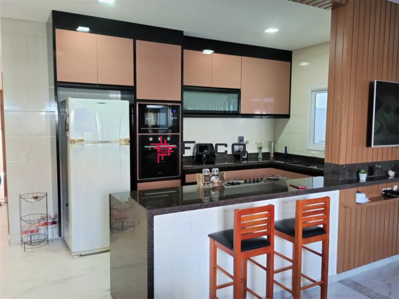 - 01 Cozinha Ampla e rica em armários planejados, equipada com Cook Top de 5 bocas, forno elétrico e micro-ondas embutidos (podem ficar no imóvel, mediante acordo)