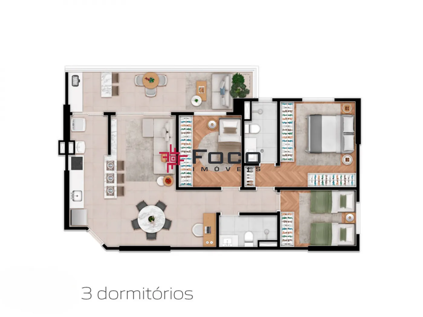 - 01, 02 e 03 dormitórios com suíte