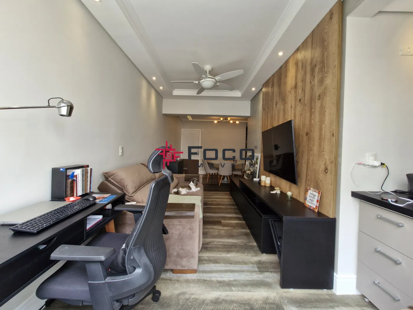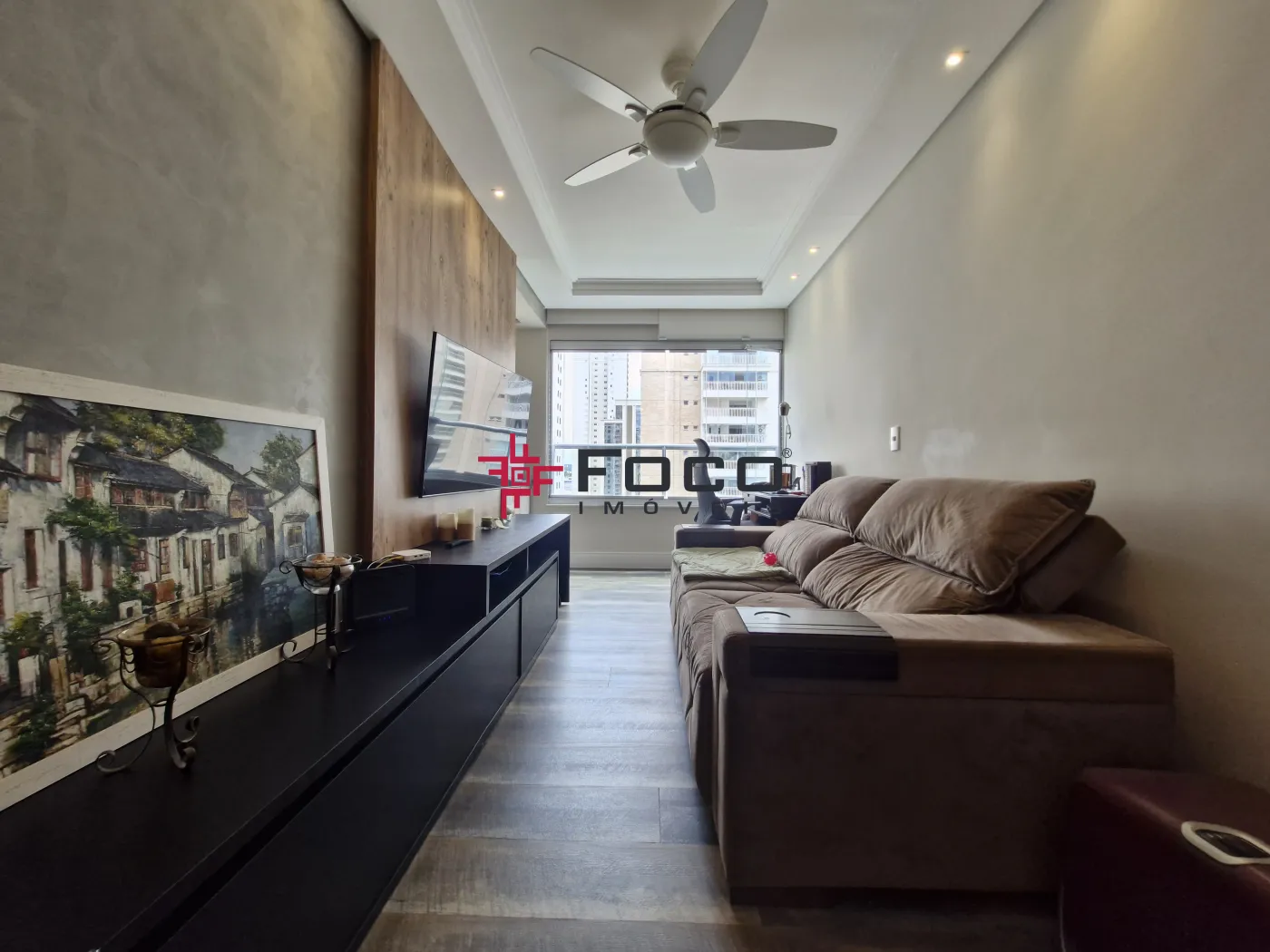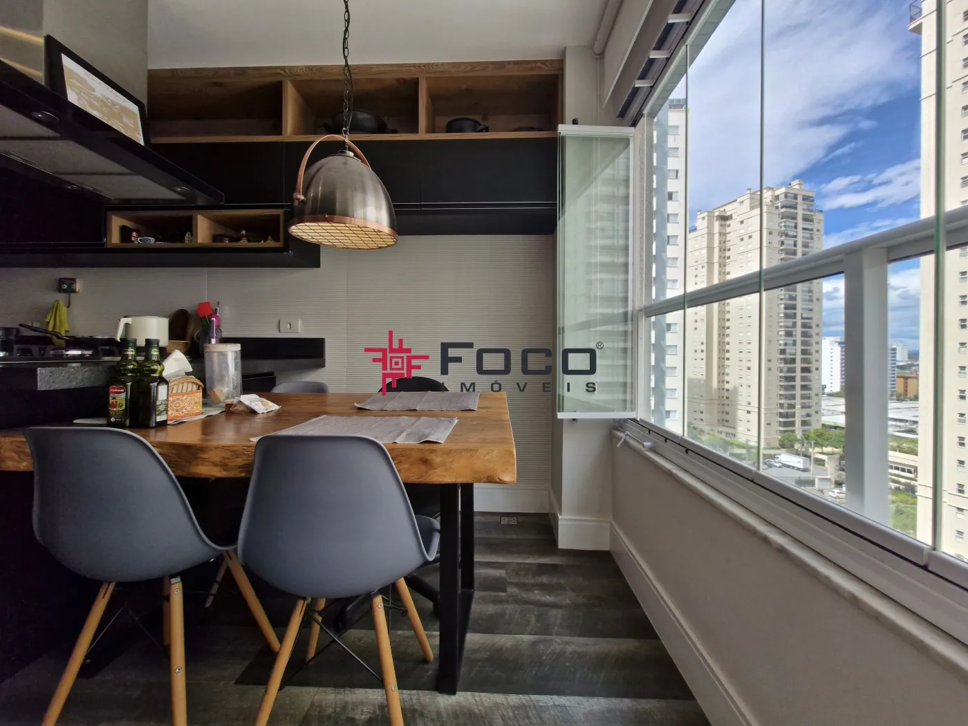- Sala integrada a sacada com fechamento em vidro