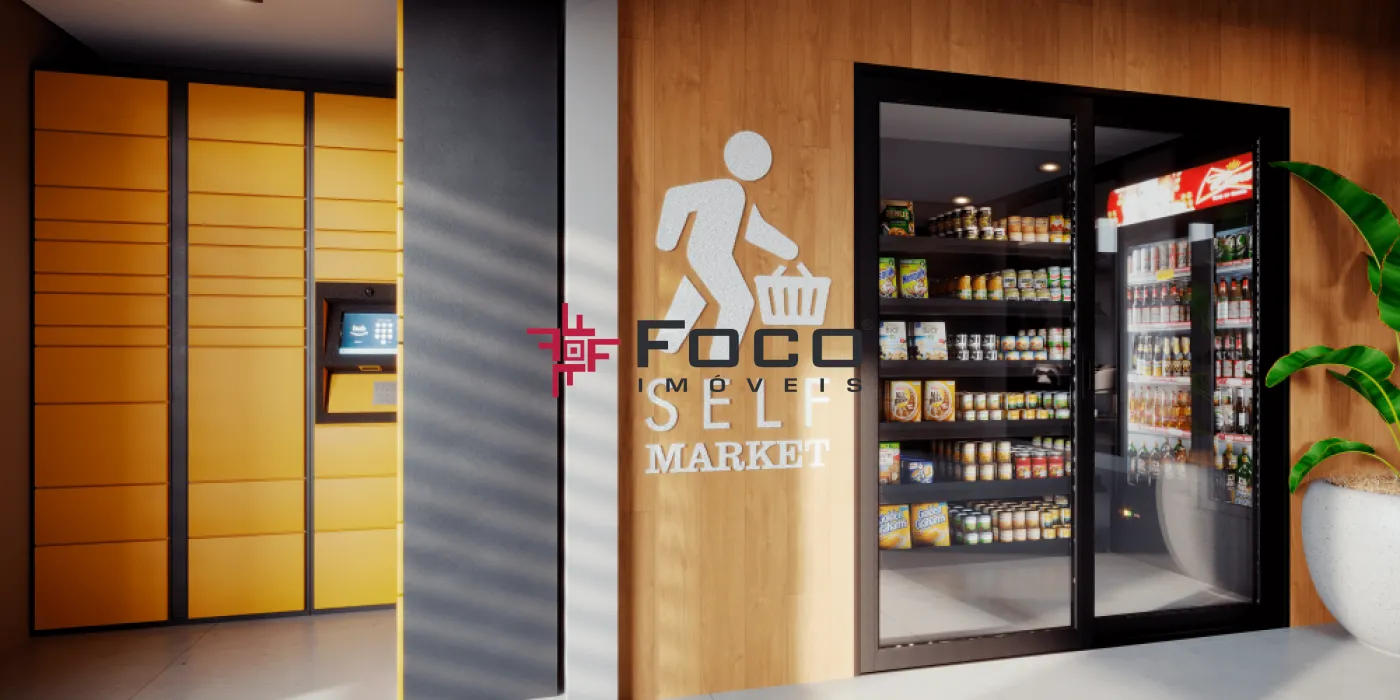 Condomínio com SEGURANÇA 24 HORAS, estrutura de lazer completa que inclui piscina, playground, academia, salão de festa, churrasqueira, Self Market, copa gourmet e muito mais.