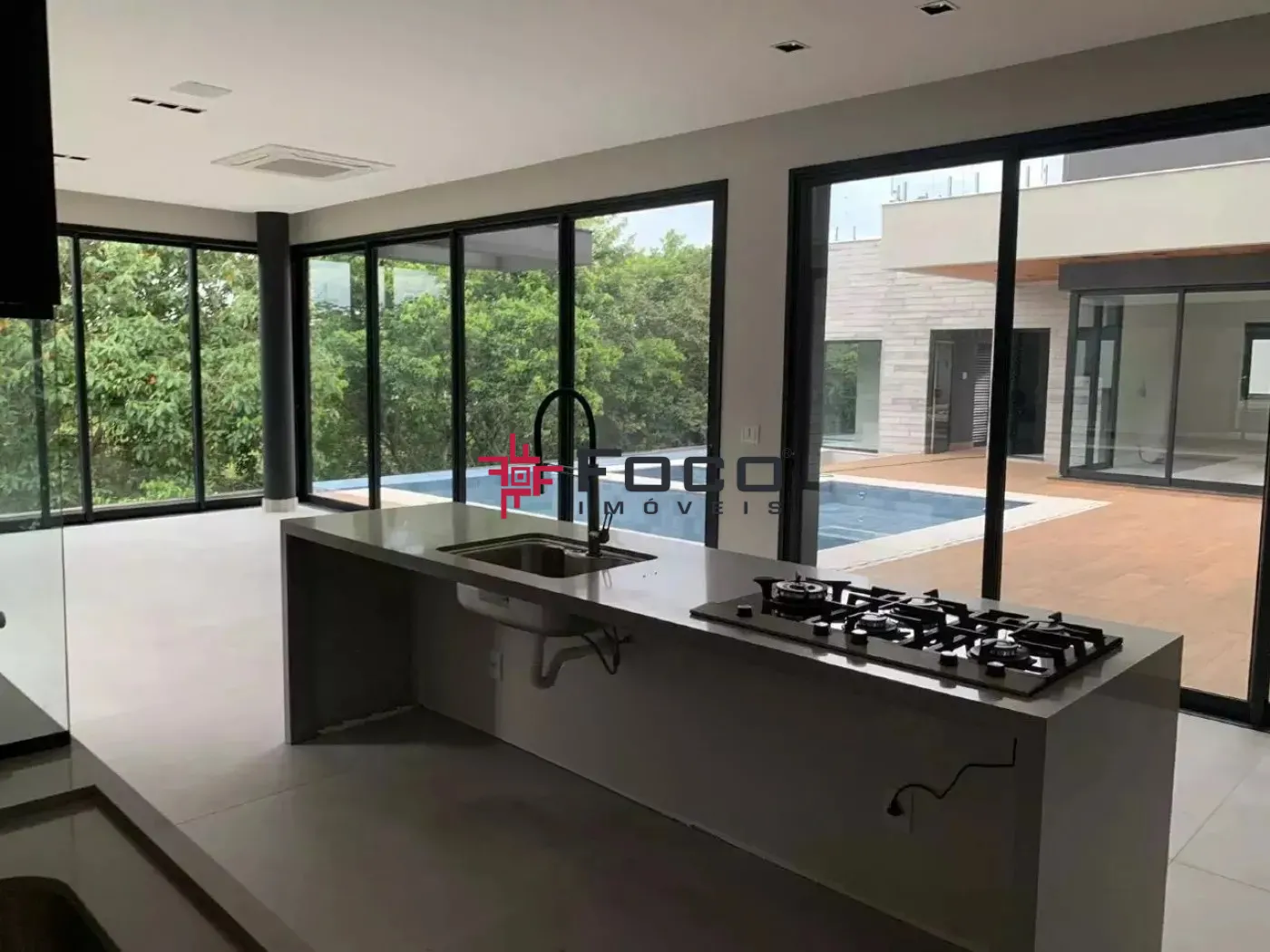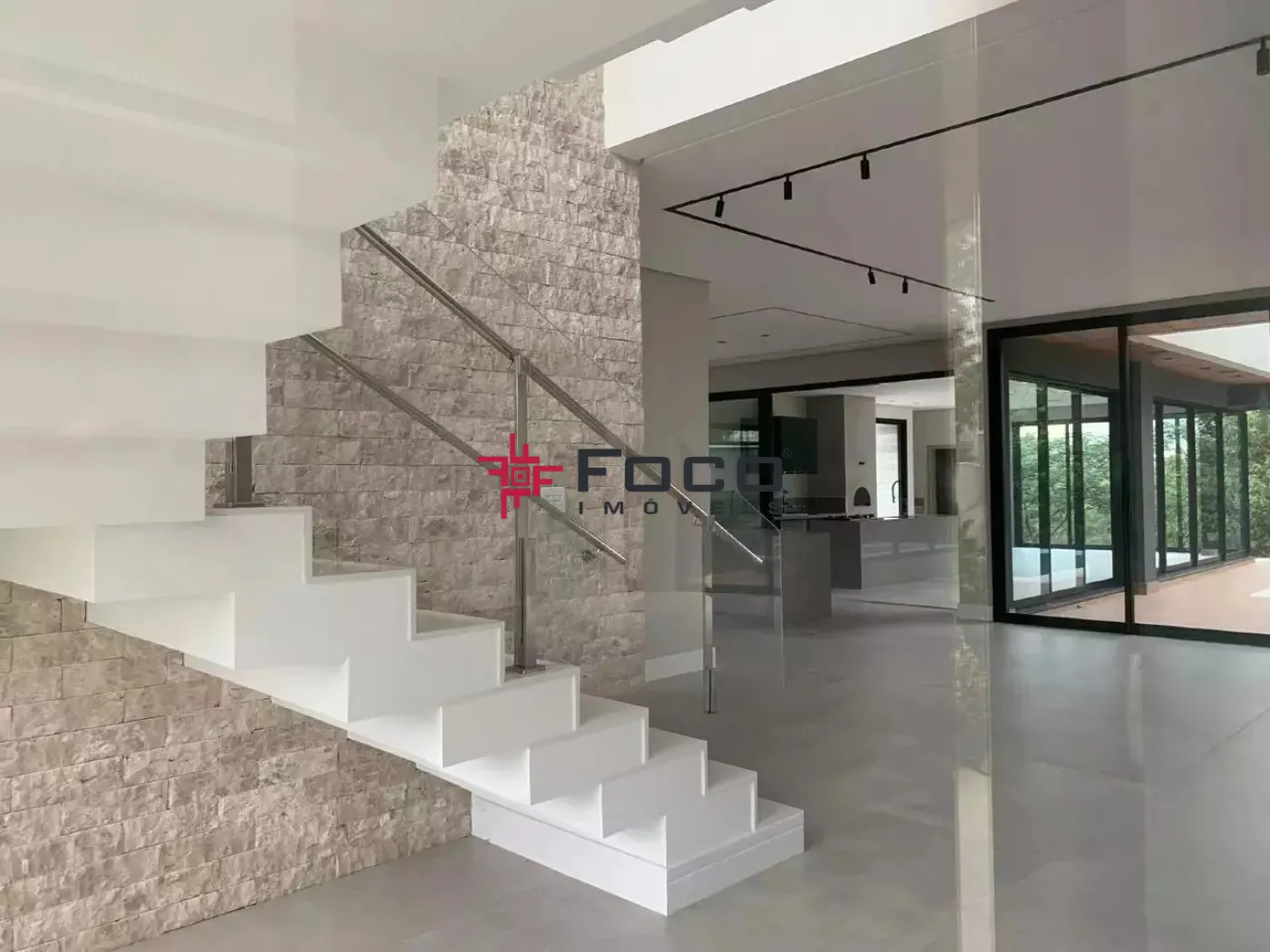 Acabamento de Alto Padrão com iluminação, escadas em mármore branco, esquadrias de vidro por toda casa, pé direito duplo, piso porcelanato.