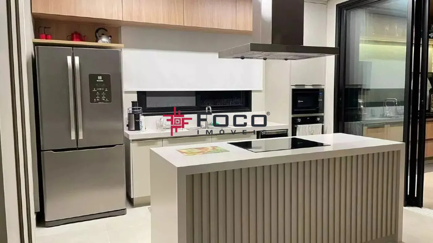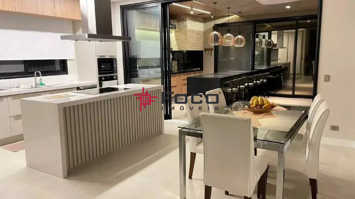 Ambientes espaçosos e muito bem iluminados, esquadrias de vidro proporcionando luz natural em toda a casa. Destaque para área gourmet, completa com churrasqueira, cooktop, forno, geladeira, armários planejados sob medida, totalmente integrado com a piscina preparada para aquecimento solar, ideal para os momentos de confraternização e lazer em família.
