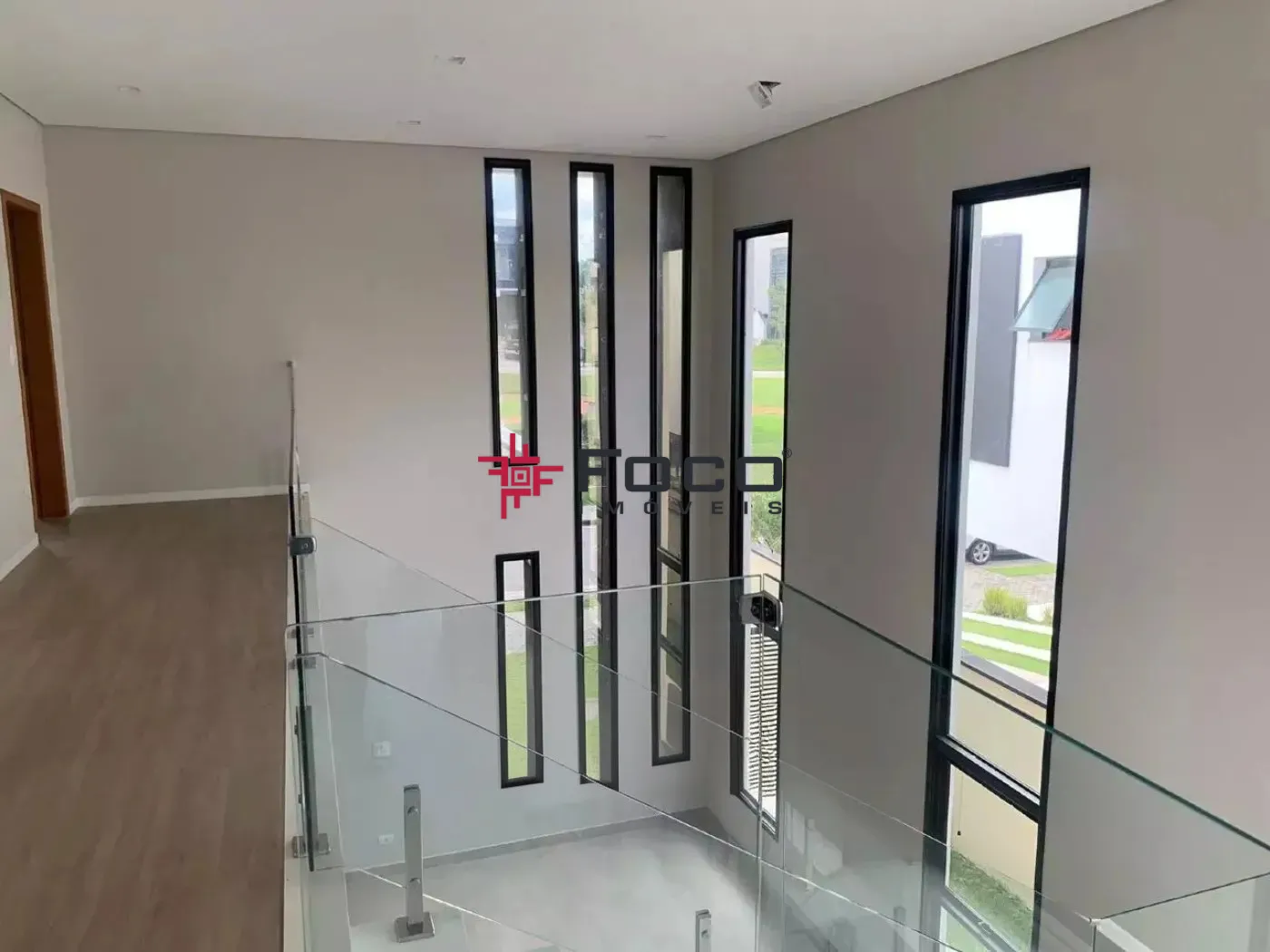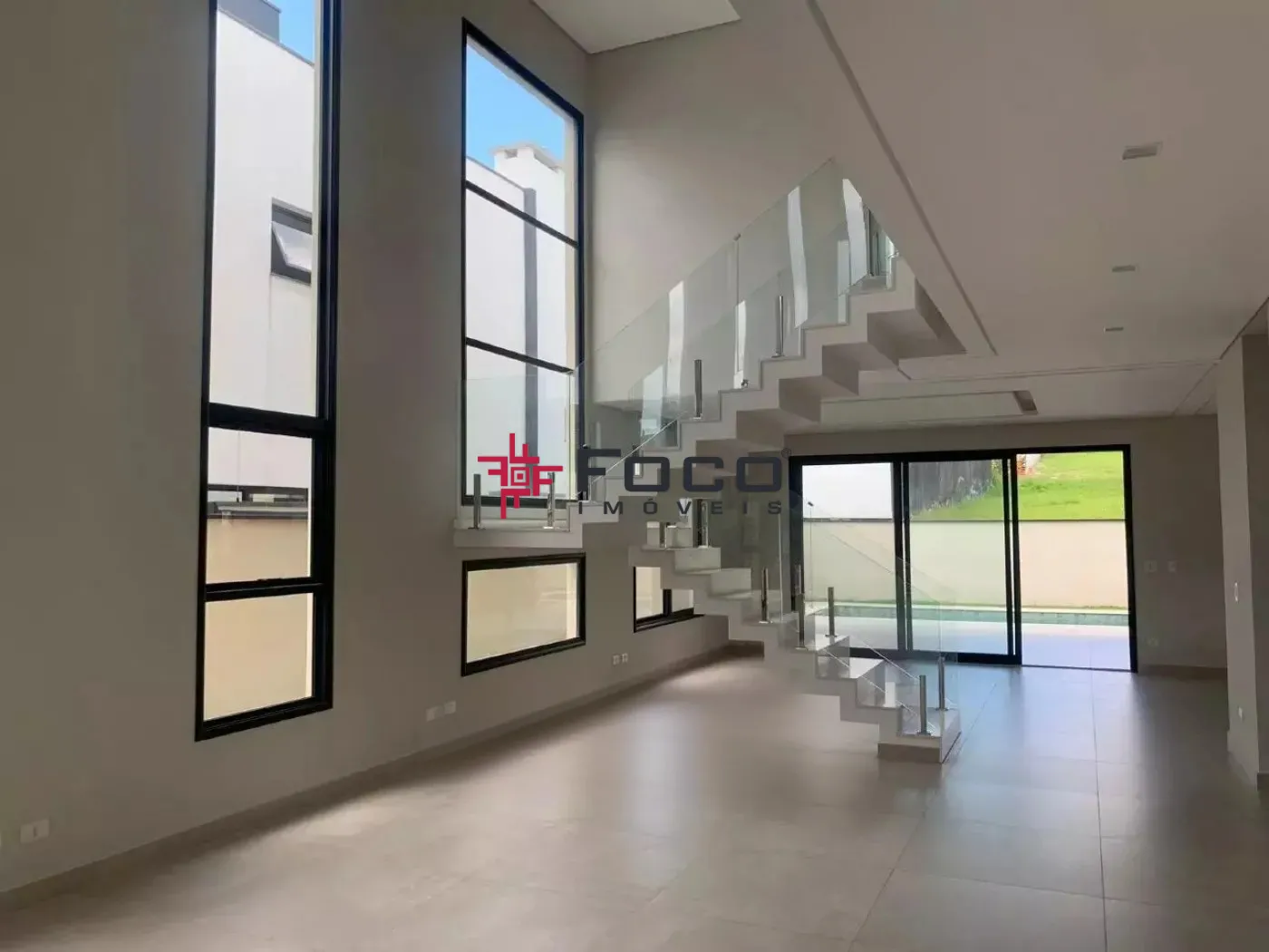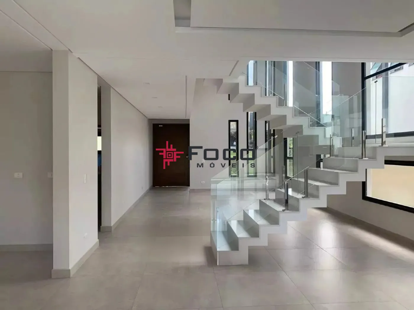 No pavimento térreo, sala com piso porcelanato e pé direito duplo, a entrada já convida a desfrutar do conforto e aconchego da área social, escada de mármore branco, proporcionando um ambiente `clean`. Possui uma suíte multiuso (dormitório/escritório ou home cinema), lavabo, sala de estar 2 ambientes, sala de jantar com mesa e sofá, cozinha planejada com ilha e acabamentos em quartzo branco, dispensa, lavanderia e área de serviço. Entrada lateral e hobby box..