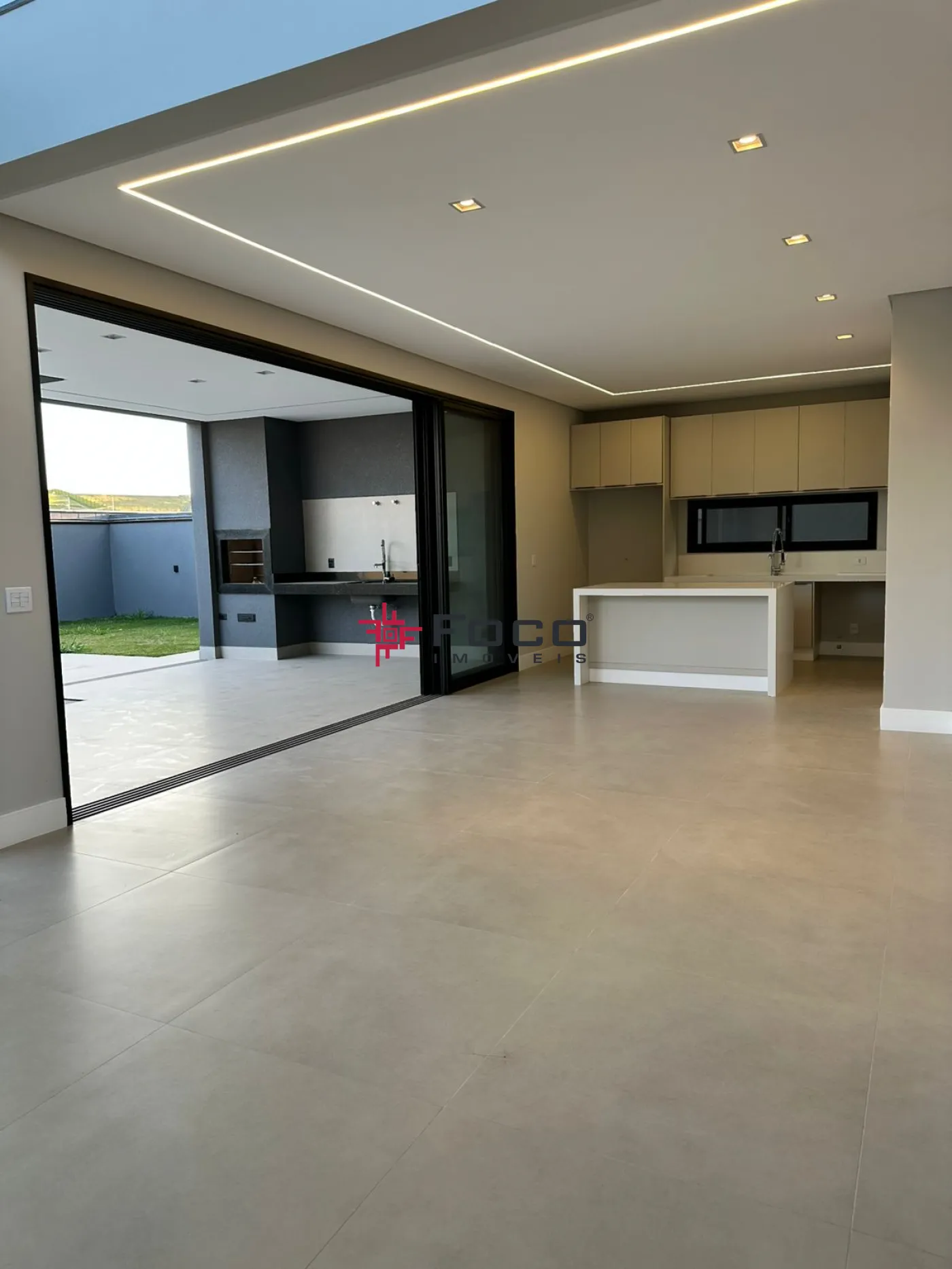 - Sala de estar e jantar integradas com a cozinha e a área gourmet;