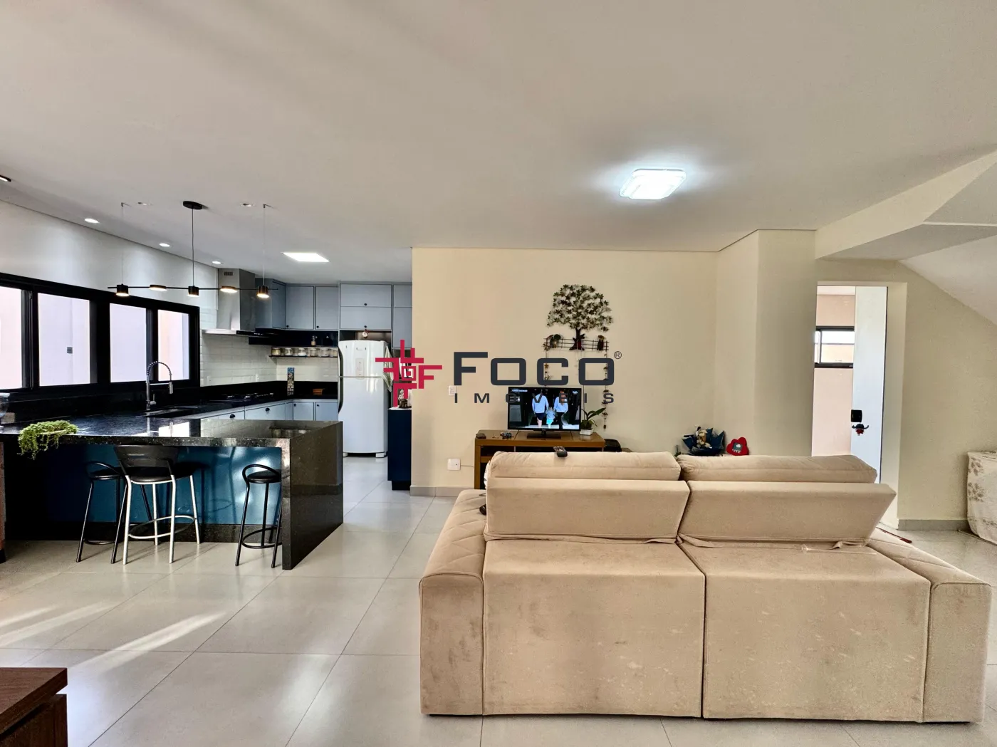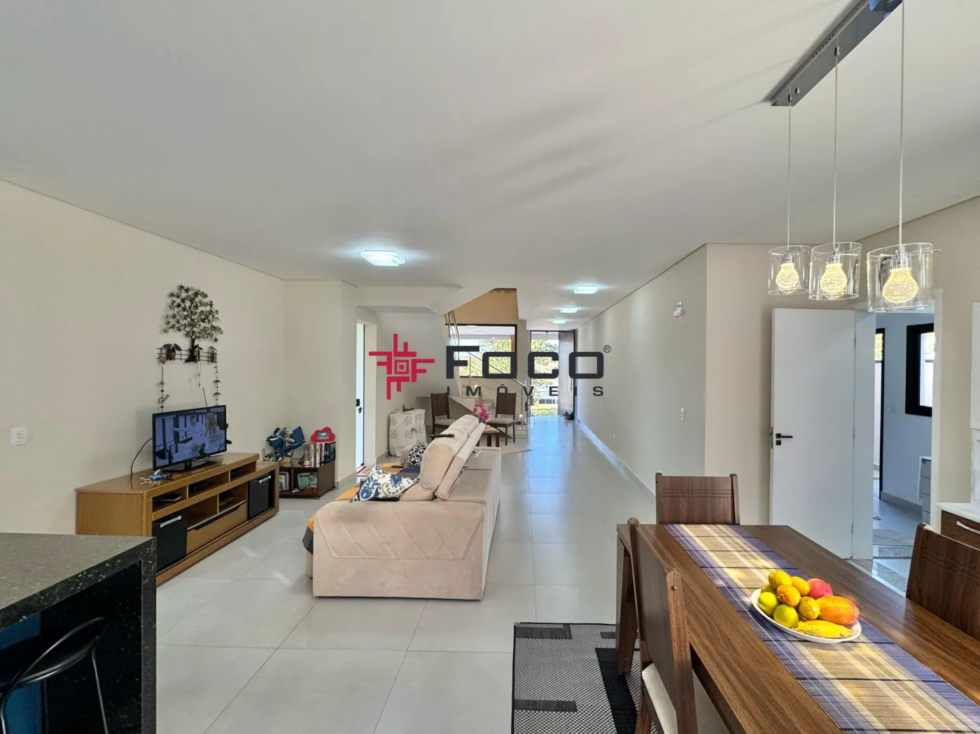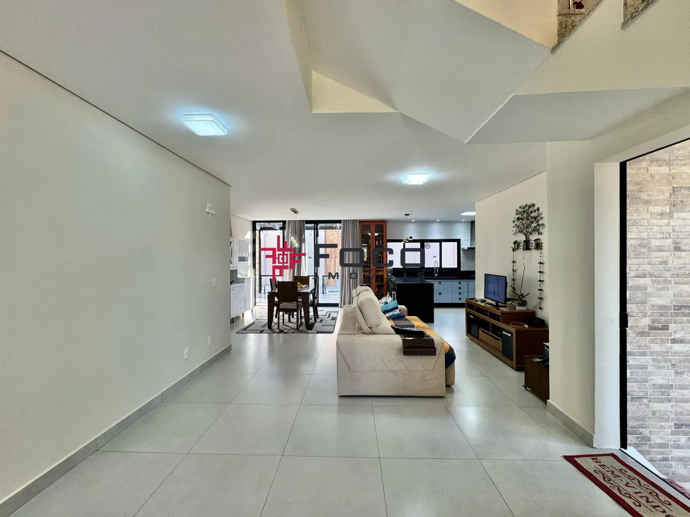 - Living em conceito aberto: sala de estar, jantar, cozinha planejada e área gourmet integrada à piscina