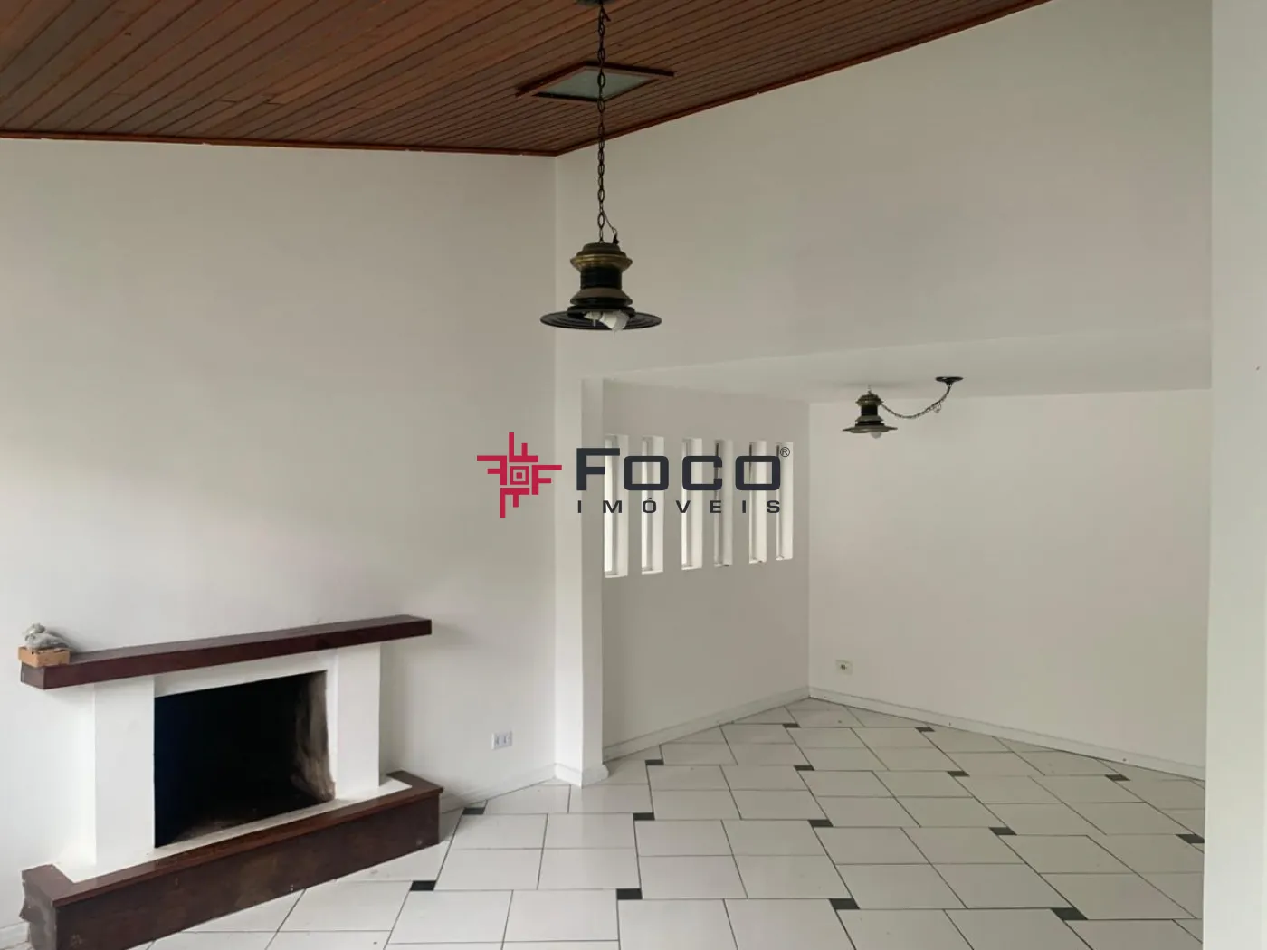 - Sala de estar com lareira e sala de jantar