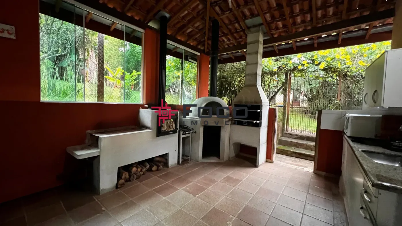 - Varanda gourmet com churrasqueira, fogão a lenha e forno de pizza