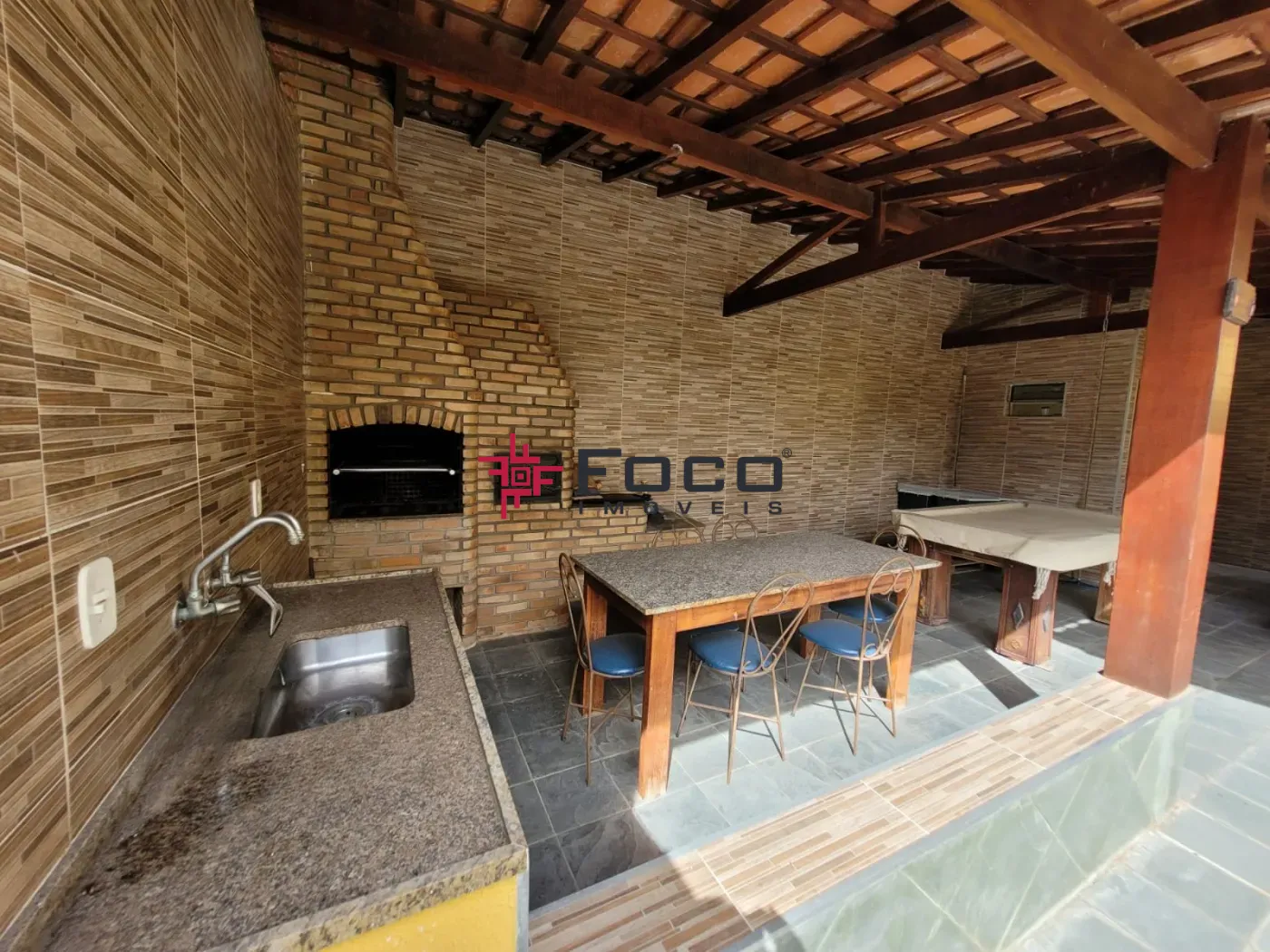 - Área gourmet com churrasqueira, fogão a lenha e forno de pizza