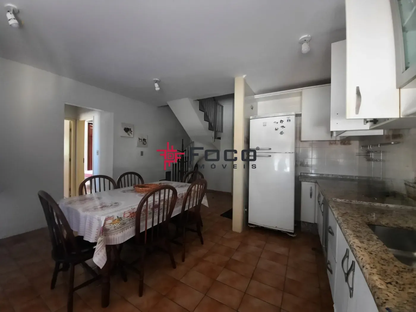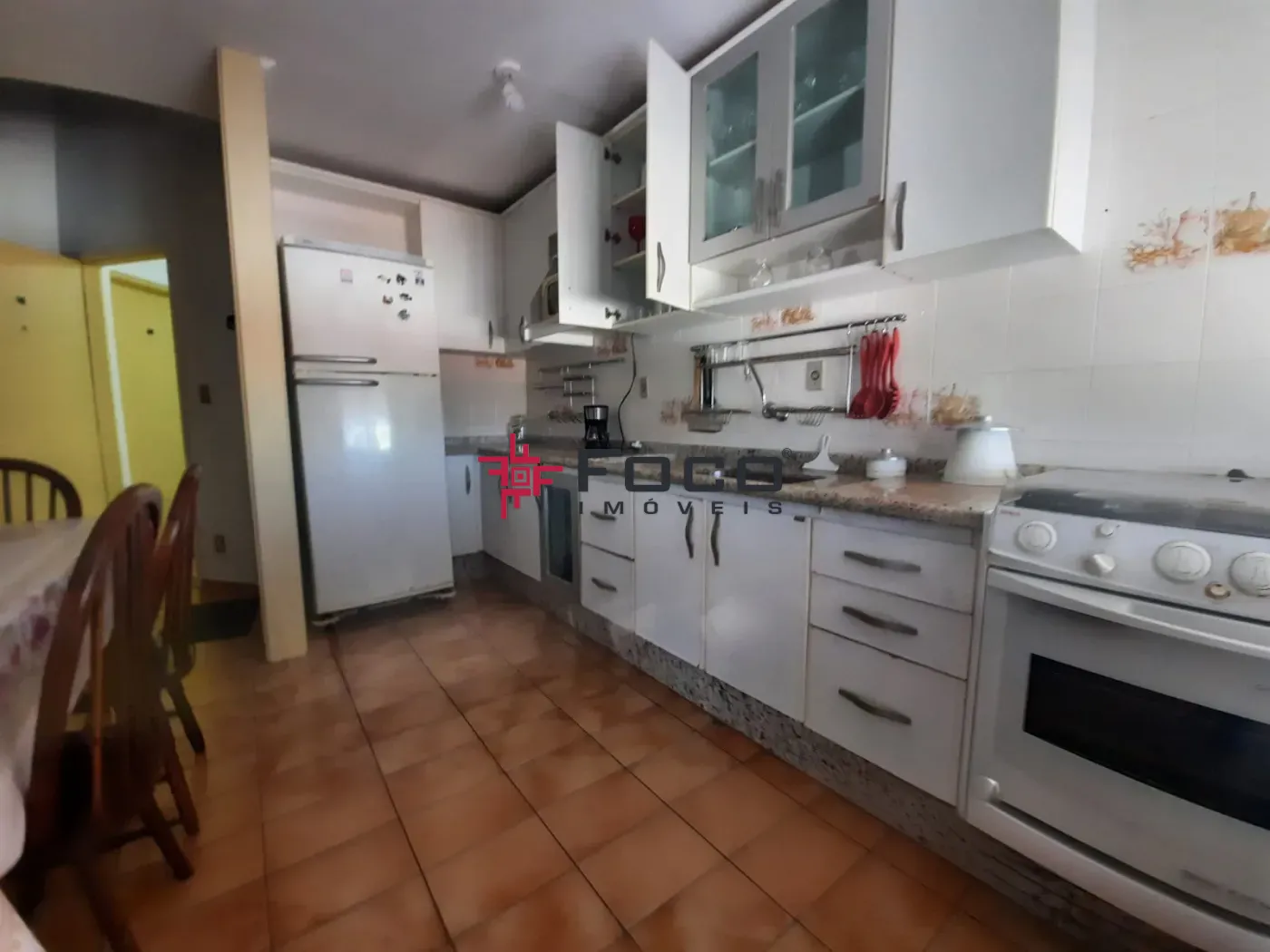 - 01 sala de jantar conjugada com cozinha com armários e sacada;